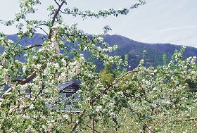 新緑が美しい時期となり、開花が遅れていたリンゴの花も一気に開き、アップルミュージアムもあるリンゴの産地、飯綱町や、安曇野三郷地区などでは、リンゴ畑一面に白いリンゴの花が見られます。
