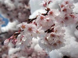 ちょうど長野・上田・松本など各地で満開だった桜は、雪とのコントラストで、不思議な情景となりました。桜祭り開催中の高遠では、雪の重みで桜の枝が折れ、歩道の除雪で一時閉園になりました。桜の花が「冷蔵」された状態で、今年は、開花期間が長く、松本城では夜桜会やライトアップの期間が終了したのにまだ見頃です。大町公園や飯山城址公園ではまだつぼみで、今年は、5月の連休まで桜が見頃になるかもしれません。