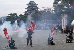 松本城での火縄銃の演武射撃(10/25)2009.11.01戦国武将ブーム。歴女で賑わう信州