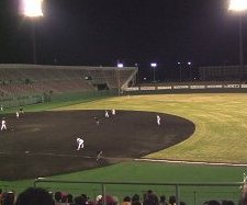天然芝がまだ黄色い松本市野球場でのゲーム2007.05.08今年始まったプロ野球北信越リーグ「信濃グランセローズ」&Jリーグを目指す「長野パルセイロ」vs「松本山雅」