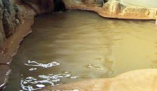 「信玄の隠し湯」の一つ、鉄分で有名な松代温泉の露天風呂2007.04.17風林火山ゆかりの地や温泉が人気。臨時特急「風林火山号」で出陣!