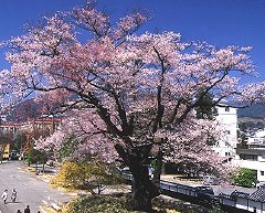 飯田市美術博物館にある樹齢350年の安富桜(飯田市提供)