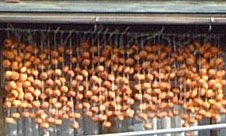 軒下の干し柿2005.11.13野沢菜・干し柿・たくあん・寒天作りの季節です