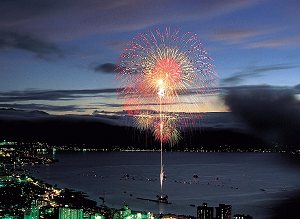諏訪湖祭湖上花火大会と諏訪湖の全景(諏訪市提供)2005.06.27諏訪湖の花火大会の指定席が発売されます