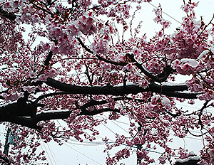 その後の冷え込みで、他の桜の名所は遅れ、高遠は4/6、上田城は4/5、松本城は4/7に開花し、今週末にかけて見頃となっています。そこに、4/10の雪で、数年ぶりに「雪中桜」が見られました。