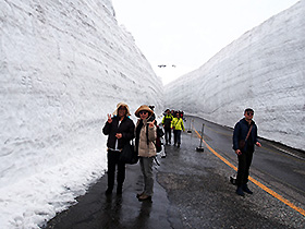 立山黒部アルペンルートの雪の大谷の高さも、例年の16mに対して今年は15mとなっています。雪が多かった昨年は19mでした。今年は25周年記念として、「雪の巨大迷路」や「雪の滑り台」もあります。