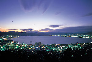 立石公園から見た諏訪湖(写真:諏訪市)2017.01.15寒波襲来! 君の名は。の聖地松原湖と諏訪湖のワカサギ釣りと御神渡り
