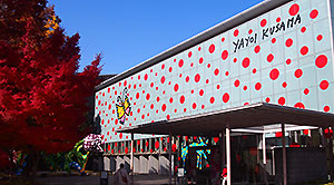 世界的人気のアーチスト草間彌生さんが文化勲章を受賞され、出身地の松本市美術館の常設展等が賑わっています。ちょうど、草間さん作の「松本から未来へ」で壁面一面に赤い水玉が見られますが、先日立ち寄ったら、入り口の紅葉の赤や黄色と驚くほどマッチしてました。