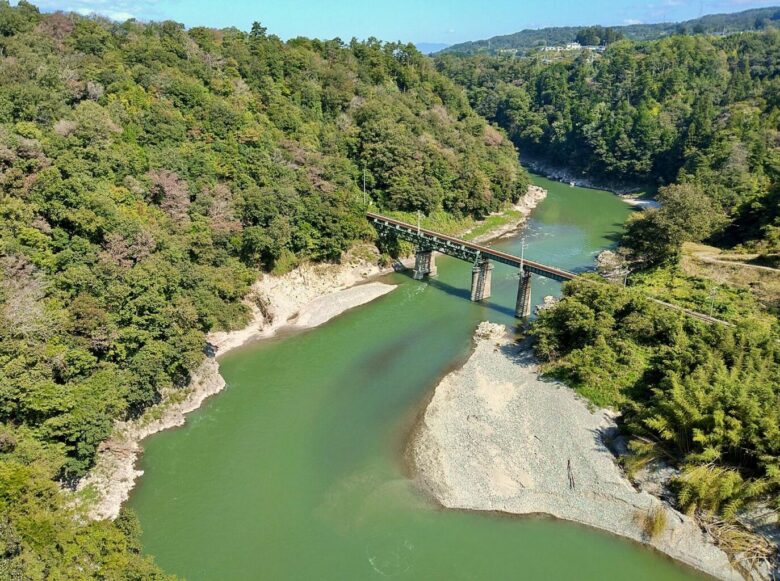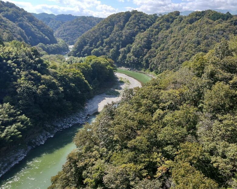 橋の途中、真上から見た天竜峡は、迫力がありました。