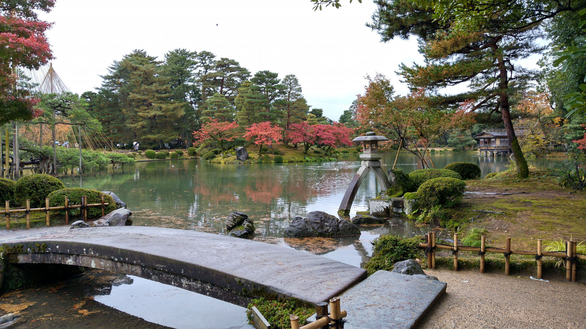 兼六園の有名な徽軫灯籠の足と虹橋(琴橋)は、どちらもコンクリートとかでなく1つの石で絶妙なカーブを描いていて驚き