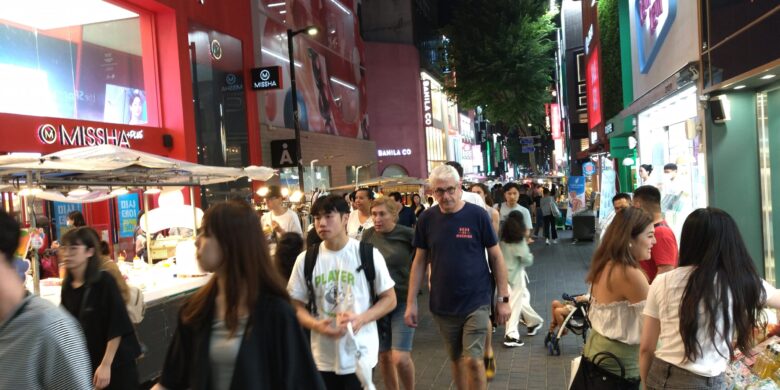 専用劇場のある韓国一の繁華街の明洞は、コロナ前の大賑わいが戻り、世界中の人達が見られるパーフェクトな多文化観光スポットとなってました。