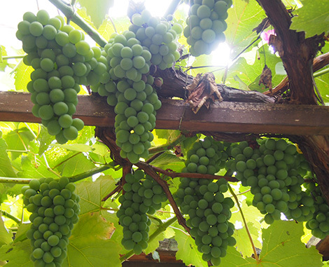 去年はダメだったブドウ棚のブドウが美味しそうに実っている一方、リンゴはちゃんと肥料や消毒をしないせいか今年は虫に食われて落ちて食べられませんでした(>_<)